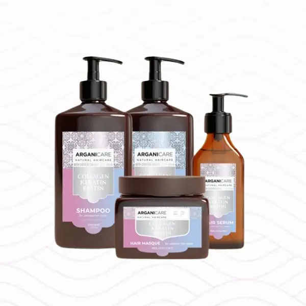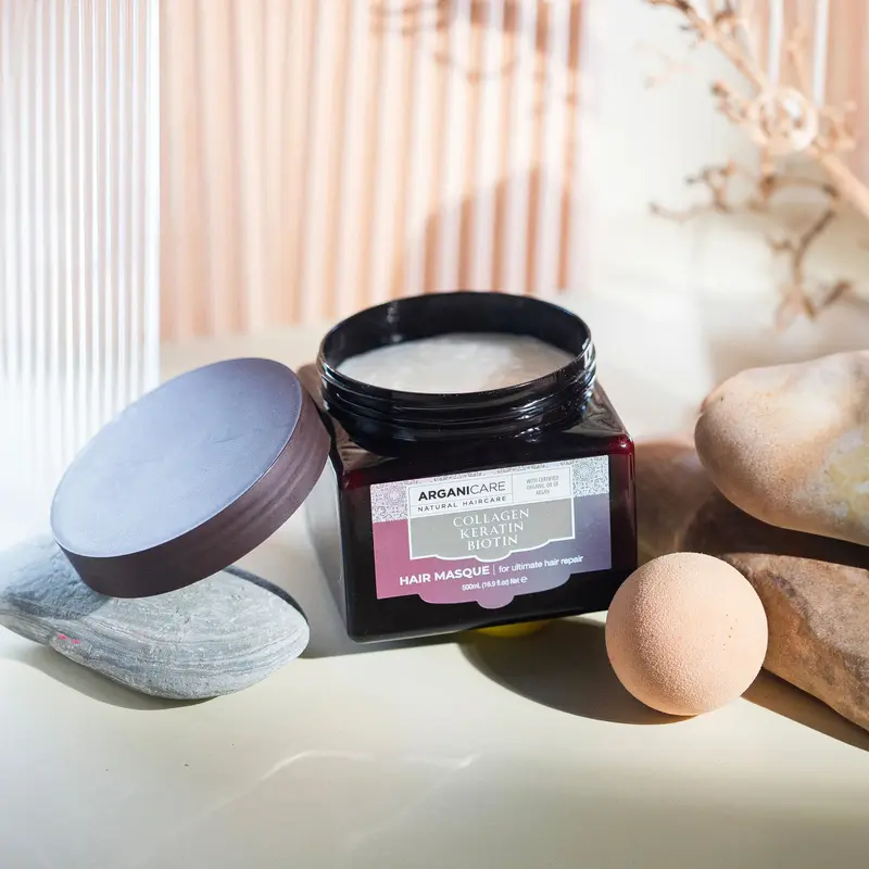 Ủ dưỡng tóc Arganicare Collagen Hair Masque 500ml – kem ủ dưỡng chuyên sâu với tinh dầu Argan và Collagen giúp nuôi dưỡng và phục hồi tóc hư tổn, mang lại mái tóc mềm mượt, chắc khỏe và óng ả sau mỗi lần sử dụng.